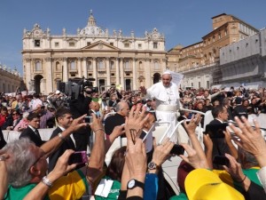 “Mas é justamente a Igreja que nos traz Cristo e que nos leva a Deus; a Igreja é a grande família dos filhos de Deus. Certamente há também aspectos humanos; naqueles que a compõem, pastores e fiéis, há defeitos, imperfeições e pecados: também o Papa tem pecados. E muitos! Mas o belo é quando nos damos conta de que somos pecadores e encontramos a misericórdia de Deus. Deus perdoa sempre. Não se esqueçam disso: Deus perdoa sempre.”