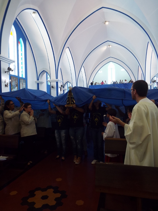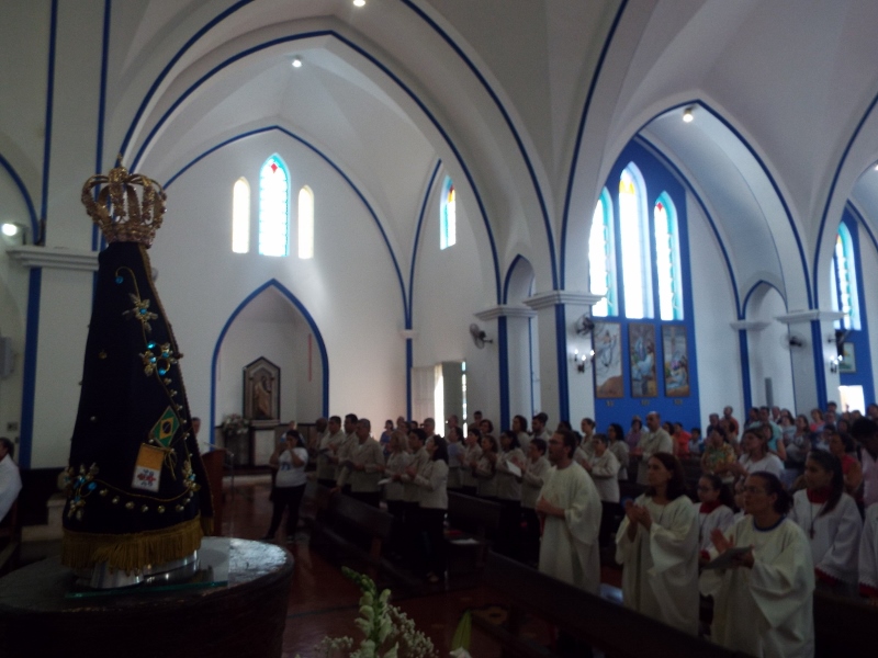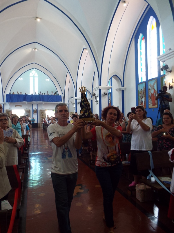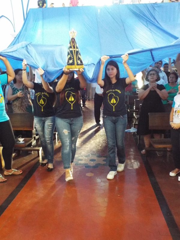 Neste domingo, a Diocese de Bauru organizou a Concentração Mariana em preparação à Romaria Diocesana para o Santuário Nacional de Nossa Senhora Aparecida no próximo Sábado, dia 18 de Fevereiro. A Missa de abertura aconteceu na Paróquia Santa Rita às 07h30. A Imagem Peregrina de Nossa Senhora Aparecida ficou em Exposição para Oração das 09h às 14h. Houve uma Carreata para levar a Imagem até o Santuário Diocesano de Nossa Senhora Aparecida, onde aconteceu a Missa de Encerramento, com a presença do Bispo D. Caetano e Padres da nossa Diocese. Os jovens prepararam uma homenagem à Padroeira do Brasil e toda a comunidade foi coberta com o Manto de Nossa Senhora Aparecida.