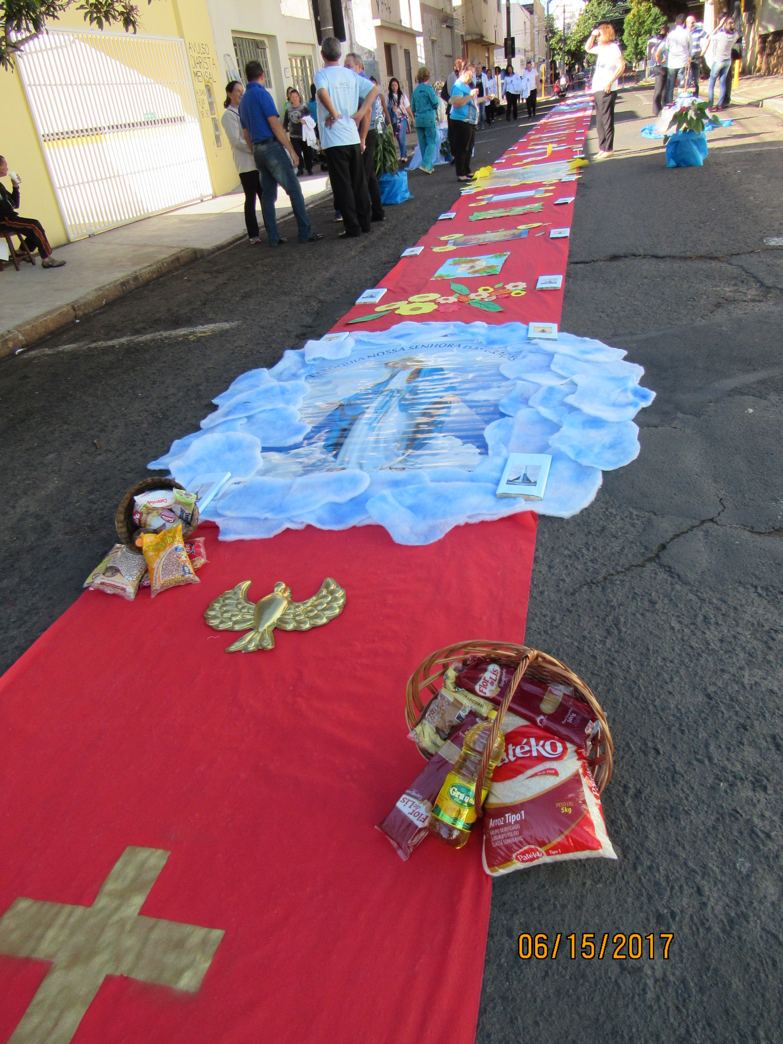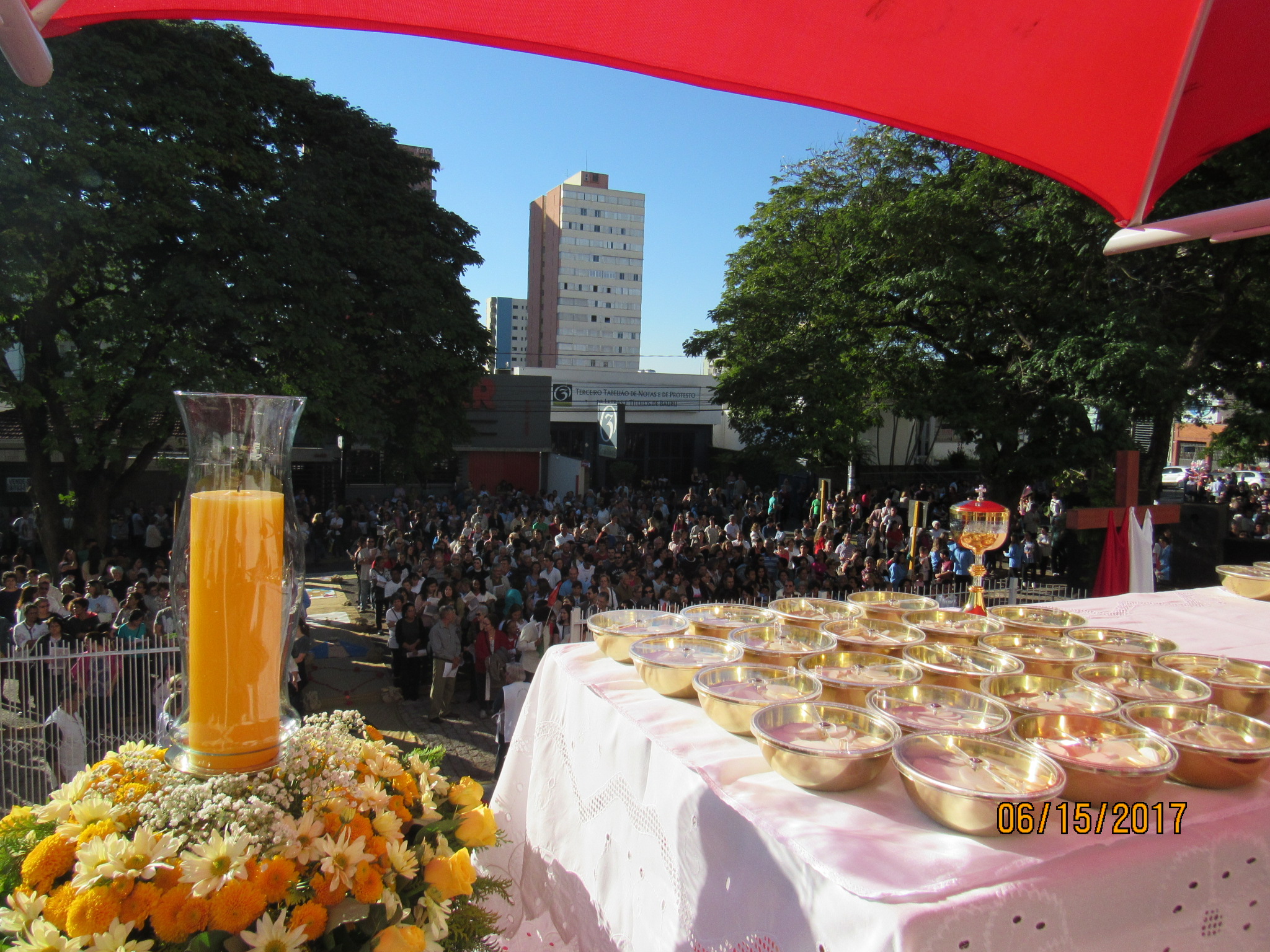A Festa de Corpus Christi é a Celebração da Eucaristia, onde presenciamos o Corpo e o Sangue de Jesus Cristo. Nesta manhã, na Capela da Matriz houve a Santa Missa para a Comunidade presidida pelo Padre Alberto. Na parte da tarde, os paroquianos participaram da decoração da rua para a procissão. A Missa foi presidida pelo Bispo D. Caetano e aconteceu na Paróquia Santa Terezinha, com a presença de vários Sacerdotes da Diocese de Bauru. Os fiéis participaram da procissão até a Catedral do Divino Espírito Santo, onde tivemos o Encerramento da Santa Missa com muitos louvores ao Nosso Senhor. A Banda Rogate estava presente neste momento de Adoração.