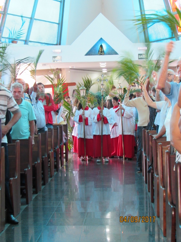 Nossas comunidades e matriz, celebraram com alegria o domingo de Ramos. Na matriz a procissão saiu da chacrinha após realizar um gesto concreto da campanha da Fraternidade, plantando duas mudas e no final da Santa Missa foram distribuídas algumas mudas a comunidade.