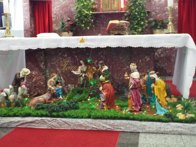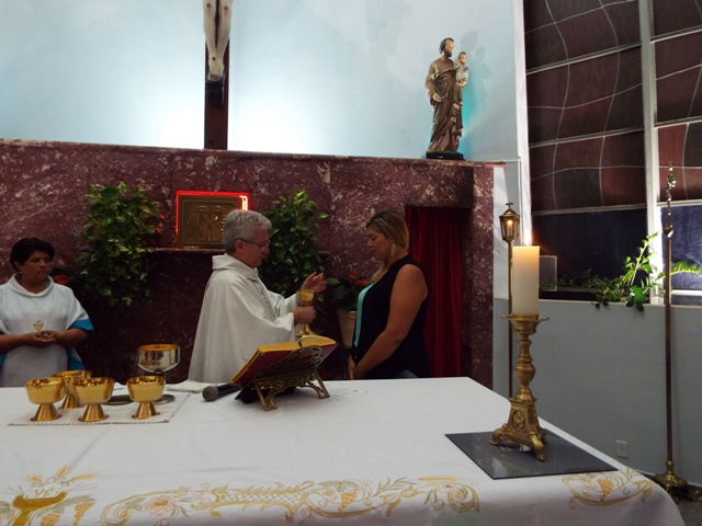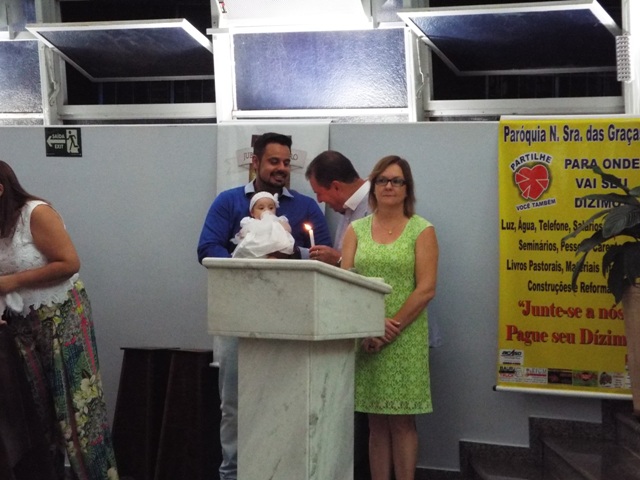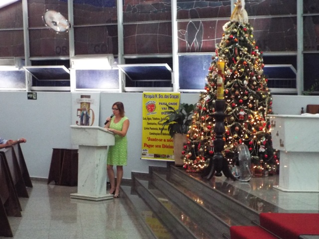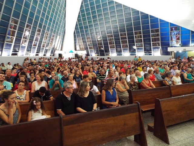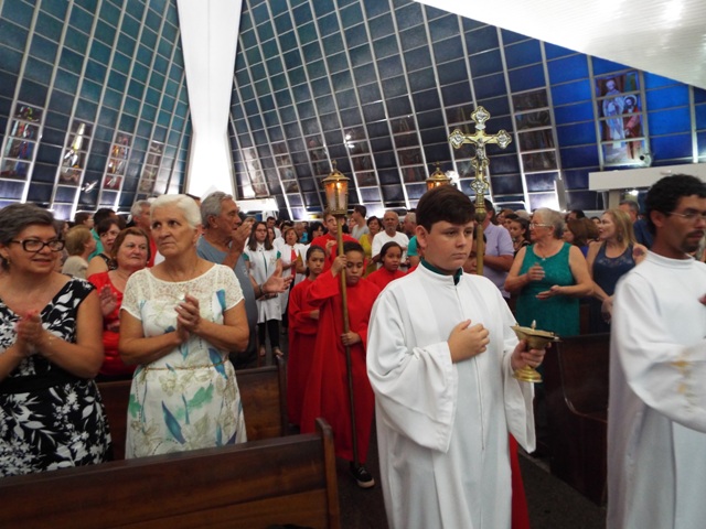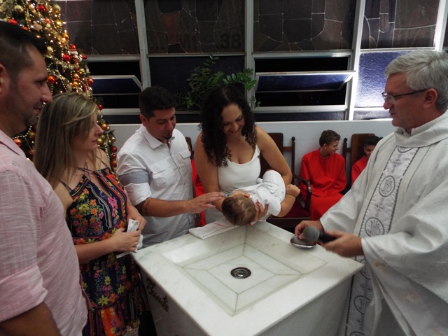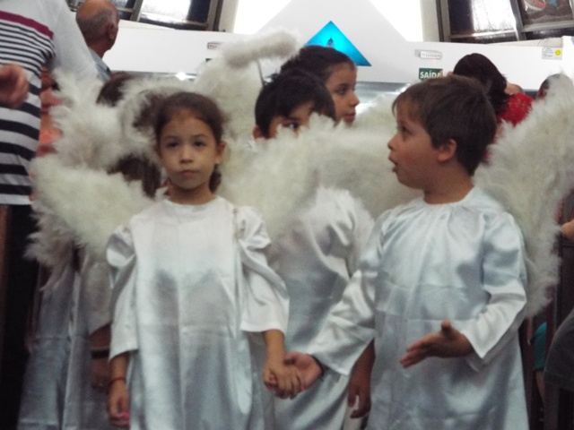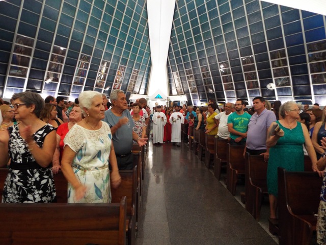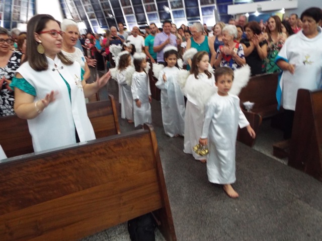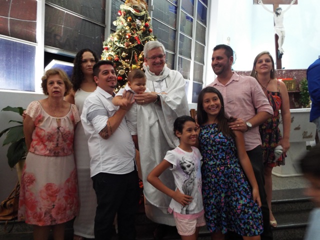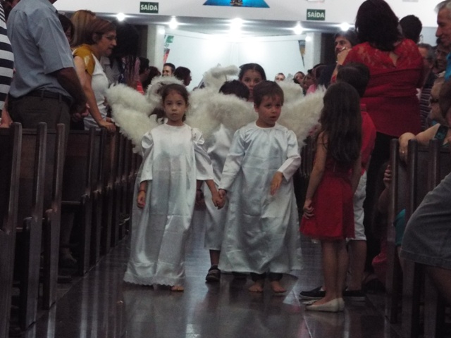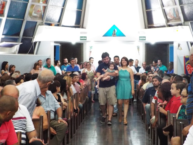 Nossa comunidade lotou a igreja matriz para celebrar com solenidade a missa do Natal do Senhor. A celebração foi presidida pelo Pároco e iniciou às 20 horas. Durante a missa foram batizadas duas crianças (Arthur e Lara) e uma jovem convertida ao catolicismo recebeu a primeira Eucaristia (Larissa). Na homilia o Pe. Gilson meditou o mistério do natal desde a perspectiva da temática do Ano da Misericórdia. “A Noite é feliz porque Deus recordou de sua misericórdia de geração em geração,” disse o Padre. No final da celebração foram apresentadas dezenas de mães com suas respectivas crianças e tantas outras vestidas de anjos.