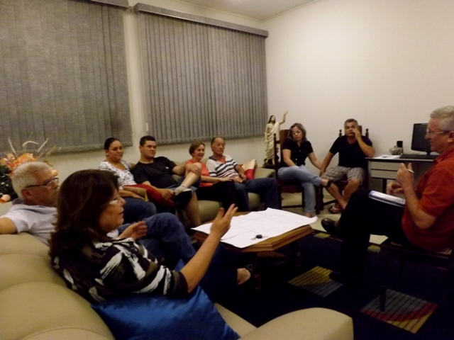 A Equipe Dirigente do Encontro de Casais com Cristo reuniu-se com o Pároco na noite desta terça-feira, 1, nas dependências da secretaria paroquial. O objetivo da reunião foi para fazerem juntos uma avaliação detalhada do último ECC. Após a avaliação do encontro o Padre pediu a todos sugestões de nomes para comporem a Equipe Dirigente do ECC para o ano de 2014. Espontaneamente o grupo indicou o nome de onze casais. Pe. Gilson agradeceu a colaboração e disse: “Rezem para que possamos discernir e convidar a nova Equipe Dirigente segundo o coração de Deus e não conforme os nossos critérios.” E acrescentou: “Assim que convidar os cinco casais e tiver formado a nova Equipe Dirigente para coordenar o ECC no ano vindouro vamos apresentá-los à comunidade.” A reunião encerrou-se com uma oração.