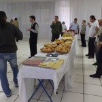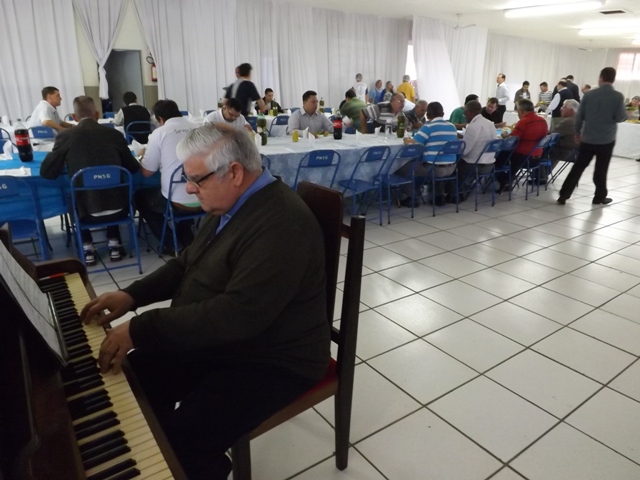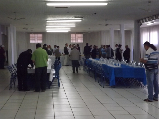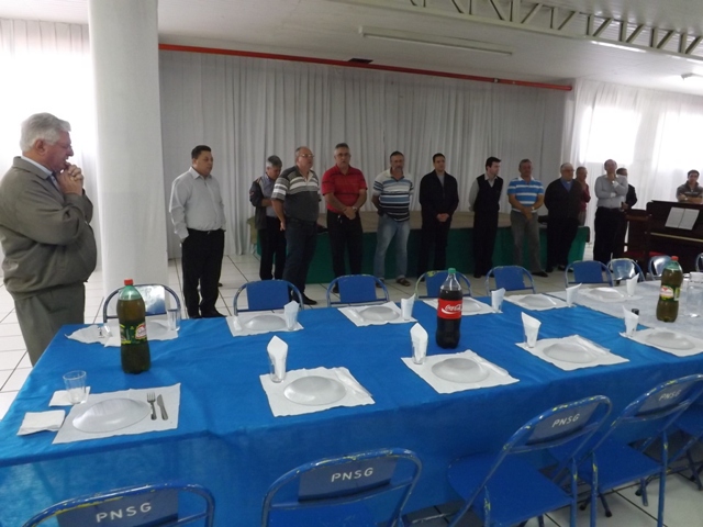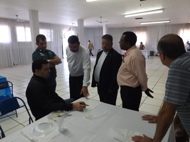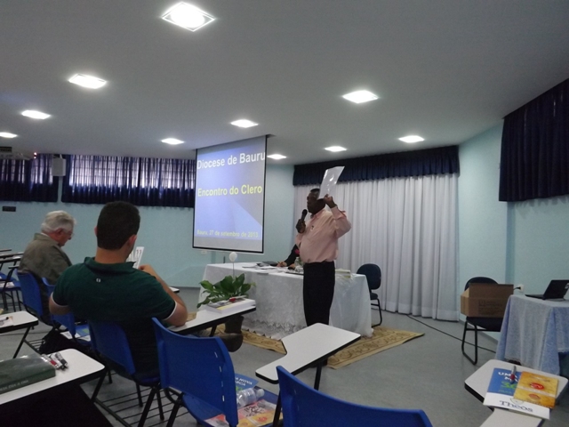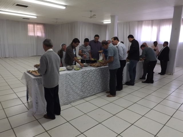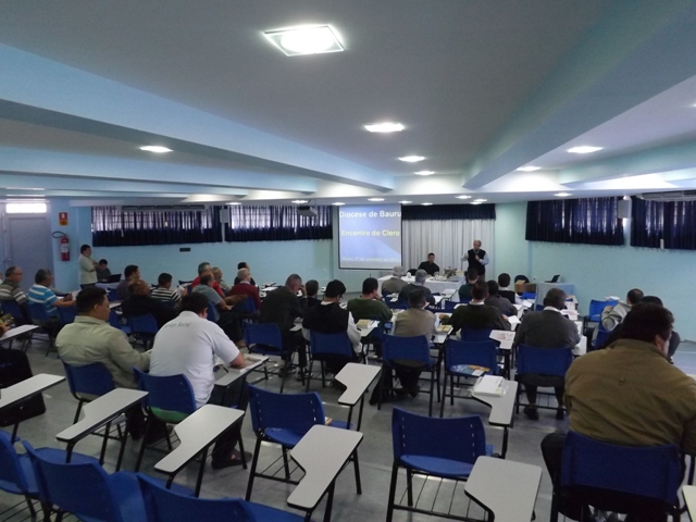 Nesta sexta-feira, dia 27 de setembro, nossa paróquia acolheu todos os padres da Diocese de Bauru acompanhados pelo Bispo D. Caetano Ferrari, para o encontro ordinário do clero diocesano. A reunião começou às 09h com um farto café da manhã. Em seguida todos se dirigiram para a Sala Pe. José Vilardi onde foram acolhidos pelo anfitrião, Pe. Gilson. Logo D. Caetano agradeceu a presença de todos bem como a acolhida da comunidade paroquial, e convidou os presentes para rezar a oração preparatória do Jubileu de Ouro da Diocese, que será celebrado em maio de 2014. Na reunião foram tratados diversos temas sobre a preparação do Jubileu e a Pastoral Presbiteral Diocesana. O fraterno encontro encerrou-se com um gostoso almoço servido ao som do piano tocado pelo Pe. Guido Mottinelli. No final o nosso pároco agradeceu a presença de todos e apresentou ao clero a equipe que colaborou nos diversos serviços deste evento eclesial.
