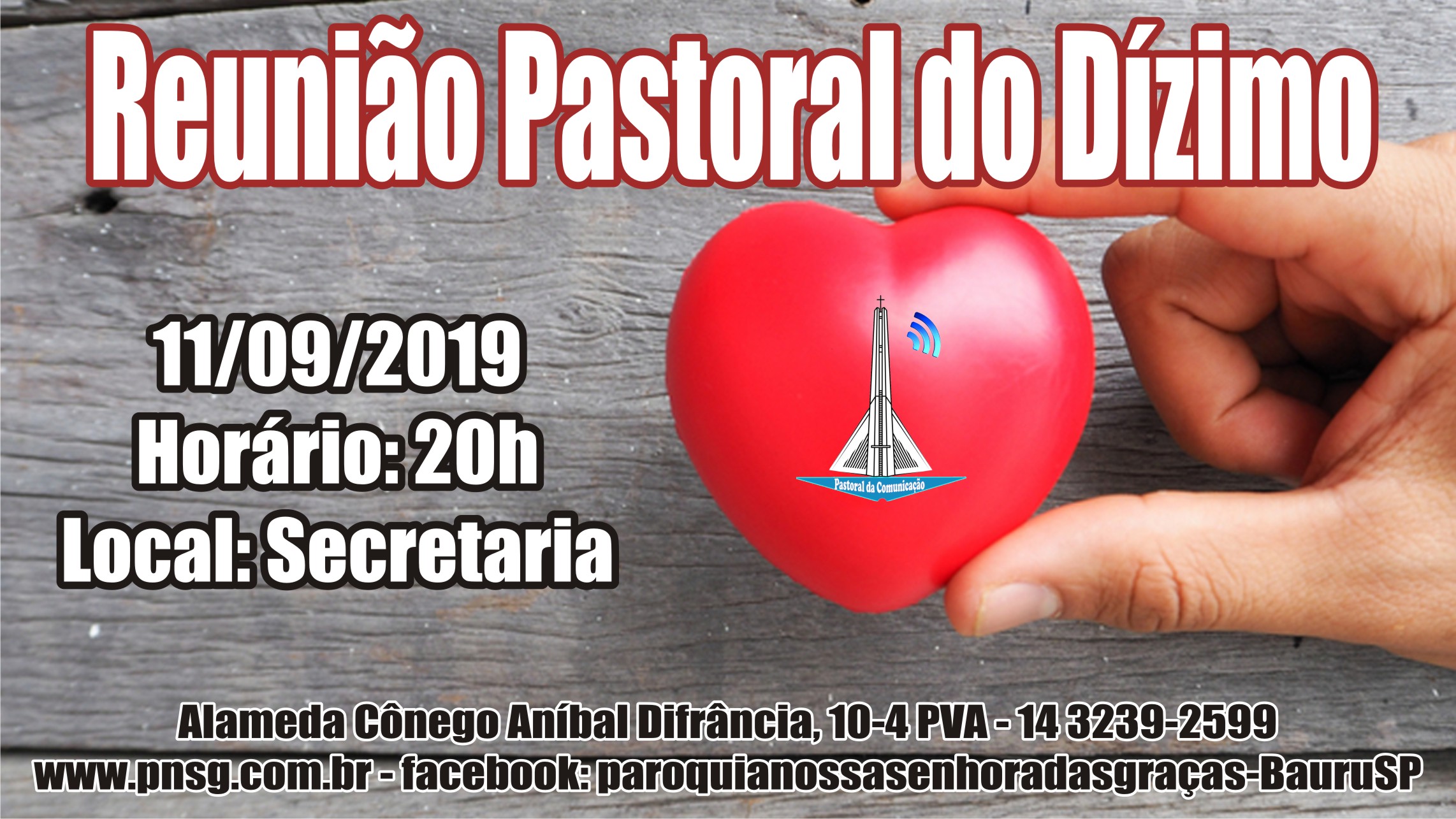 Na próxima quarta, dia 11, acontece mais uma reunião da Pastoral do Dízimo. Participe.