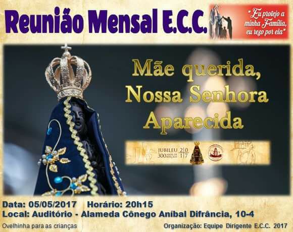 Vamos todos participar de mais uma reunião mensal do ECC. A reunião é aberta a toda comunidade. Sexta-feira dia 05 de maio.