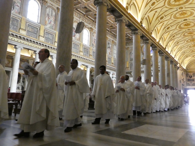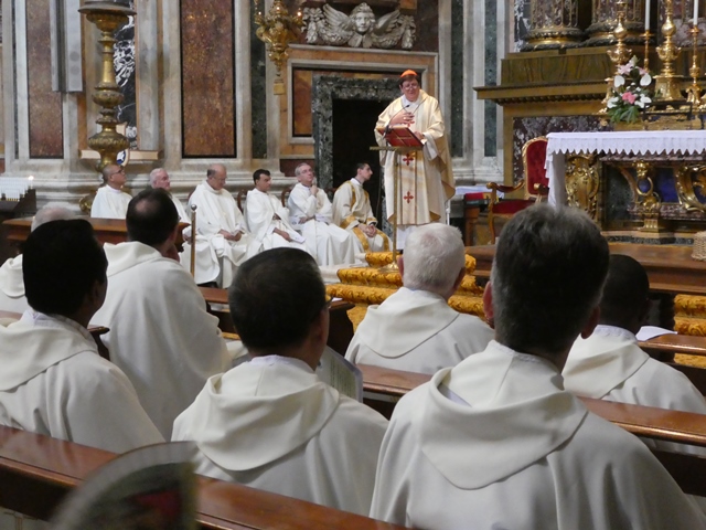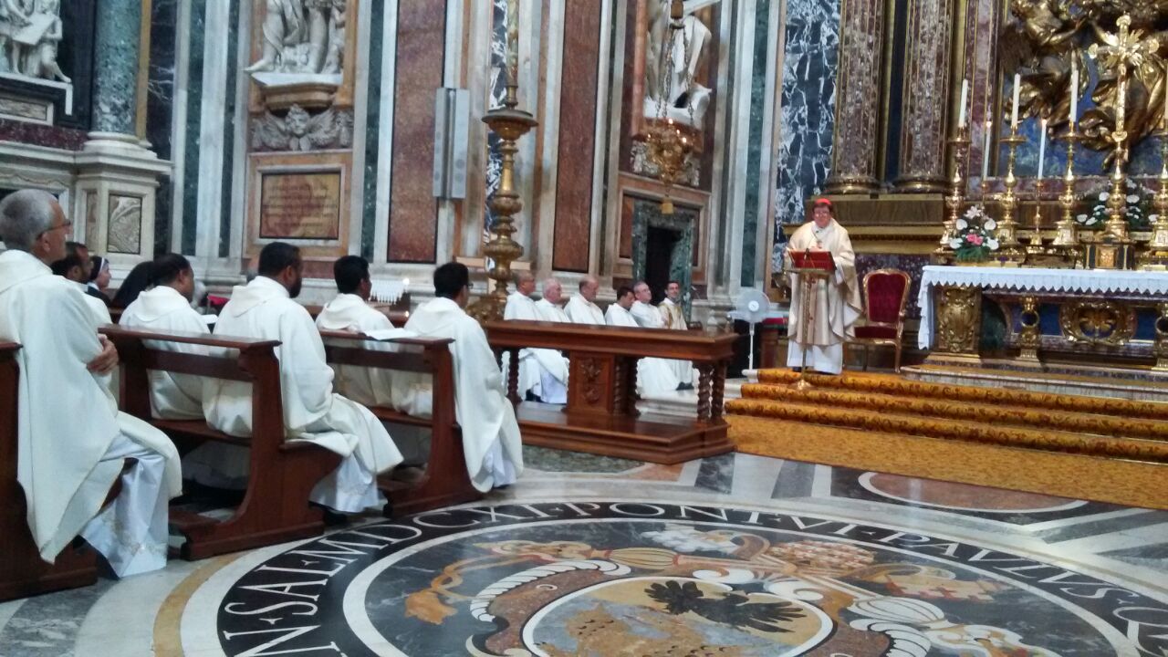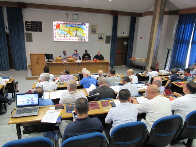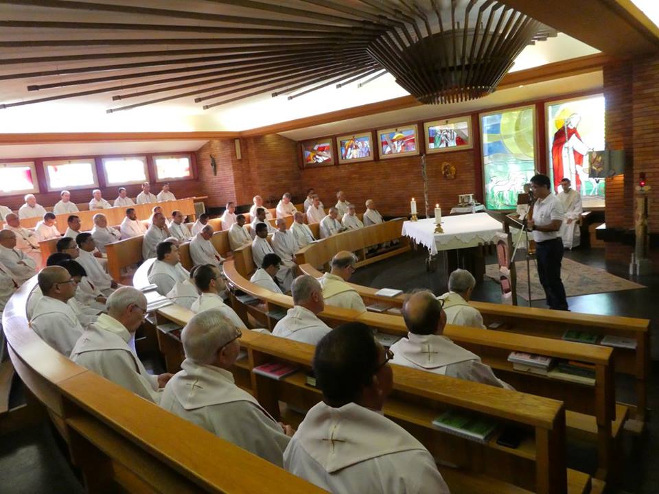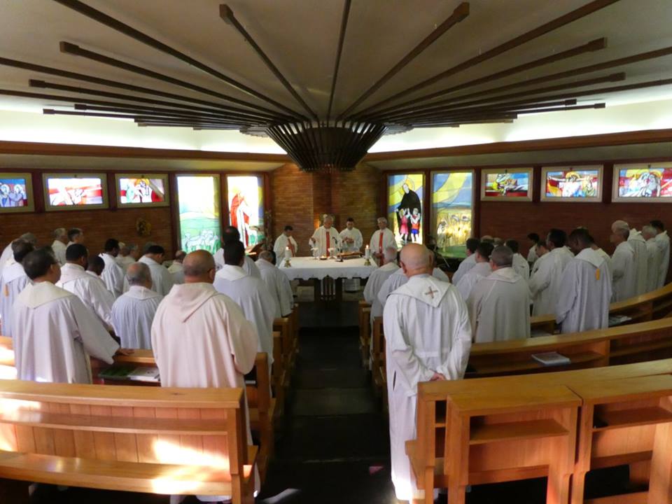 Começou na terça-feira, dia 05 de julho, na cidade de Morlupo, Itália, a 12º Assembleia Geral dos Rogacionistas do Coração de Jesus. A data coincide com o aniversário de nascimento do Fundador da Congregação Santo Aníbal Maria Di Francia (Messina, 5 de julho de 1851). A Assembleia Geral, também denominada de Capítulo, se estenderá, conforme estimativa, até o dia 24 do corrente mês. Os 60 capitulares refletem o tema: “Vendo as multidões, sentiu compaixão e disse: Rogai. A identidade carismática e os desafios de hoje.” A Assembleia Capitular é composta por delegados de vários países: Itália, Brasil, Argentina, Filipinas, India, Estados Unidos, Ruanda, Camarões e Iraque. O Capítulo começou com um tempo de reflexão dirigido pelo Pe. Mario Aldegani, Superior Geral da Congregação dos Padres Josefinos de Murialdo. Na parte da tarde do primeiro dia capitular, todos participaram da solene celebração eucarística presidida pelo Cardeal João Braz de Aviz, Prefeito da Congregação para os Institutos de Vida Consagrada e as Sociedades de Vida Apostólica. A celebração teve lugar na Basílica Santa Maria Maior e contou com a presença das religiosas Filhas do Divino Zelo que neste mesmo período também realizam sua Assembleia Geral. Após a missa houve uma confraternização na Cúria Geral dos Rogacionistas. Na manhã da quarta-feira, dia 6, os capitulares celebraram a santa missa presidida pelo Superior Geral, Pe. Ângelo, às 07h15. Às 09h30 começou a primeira sessão de trabalho com uma oração invocando ao Espírito Santo. O Superior Geral acolheu a todos e fez a chamada dos capitulares e passou a eleição da presidência do capítulo. Pe. Eugene Ntawigerenera e Pe. Jean Pierre Ntabwoba foram indicados e aclamados para a função de escrutinadores por ser os dois mais jovens capitulares. Foram eleitos para a presidência do capítulo: Pe. Bruno Rampazzo (Vice-presidente e primeiro moderador), Pe. Abcede Herman (segundo moderador), Pe. Siciliano Fortunato (Secretário). Conforme as normas o capítulo é presidido pelo atual Superior Geral, Pe. Ângelo Mezzari. Foi lida à Assembleia a mensagem enviada pelo Santo Padre Francisco e uma mensagem enviada pelo Cardeal João Braz de Aviz. O início dos trabalhos capitulares é marcado pela apresentação do extenso relatório do Governo Geral. Na quinta-feira, dia 7, após a oração da manhã e a celebração da missa, os capitulares continuaram com a leitura do relatório do Governo. Dentre os pontos do relatório queremos destacar o significativo aumento de paróquias confiadas à Congregação (73), que encontra-se presente nos 5 continentes e em 28 países com aproximadamente 600 religiosos. Nos dias seguintes seguirão as seções de trabalho até chegar a elaboração do Documento Capitular e a eleição do Novo Governo. Da Província São Lucas, que alcança as comunidades da Argentina, Brasil e Paraguai, participam os padres: Pe. Juarez Albino Destro (Provincial), Pe. Gilson Luiz Maia, Pe. Marcos Lourenço Cardoso, Pe. Marcos Rodrigues de Ávila, Pe. Geraldo Tadeu Furtado, Pe. Giovanni Guarino, Pe. Valmir de Costa e o Pe. Lédio Milanez. O evento capitular, que acontece em plena celebração do Jubileu da Misericórdia, é uma nova etapa da Congregação dos Rogacionistas chamada a avaliar e projetar sua missão na Igreja e no mundo. Acompanhemos todos com a nossa oração.